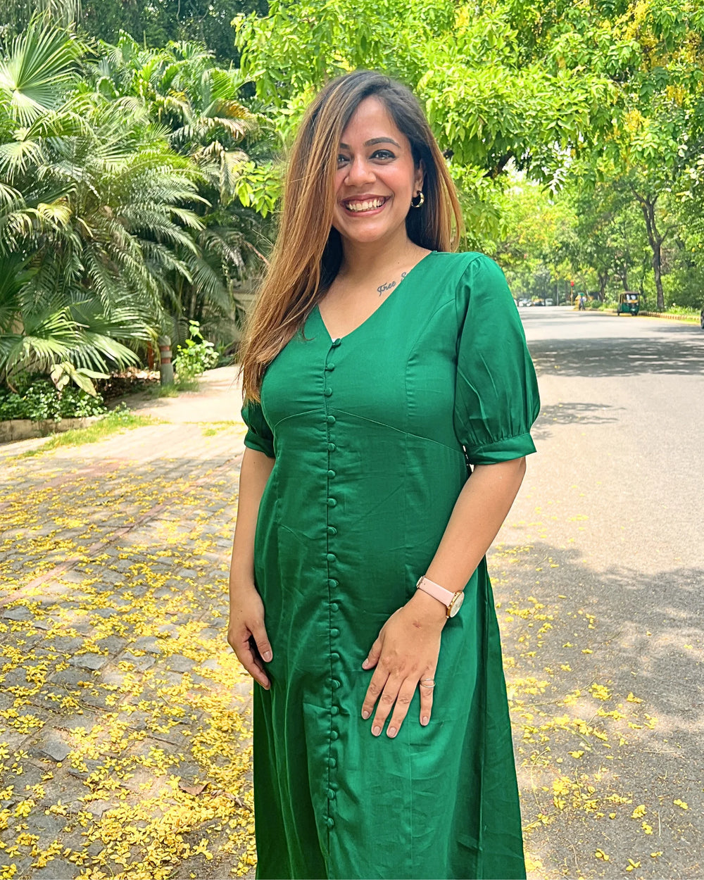 Forest Green Cotton A-Line Dress