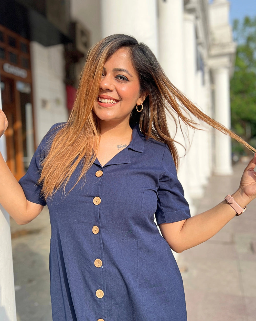 Navy Blue All-Day Linen Shirt Dress