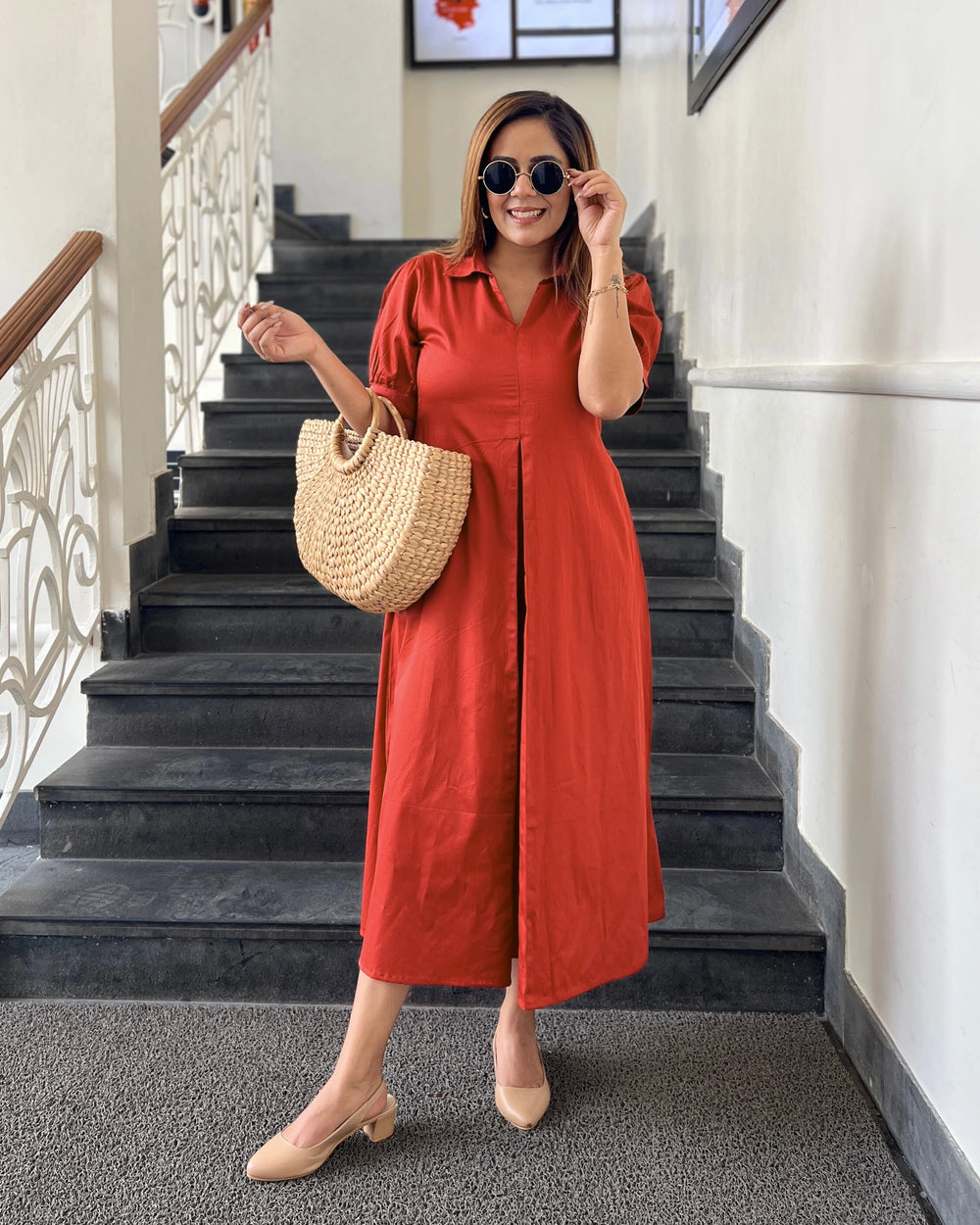 Rust Cotton A-line Dress