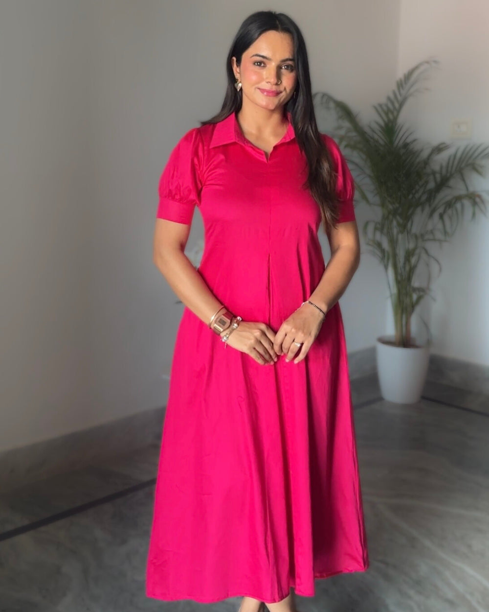 Fuchsia Cotton A-Line Dress