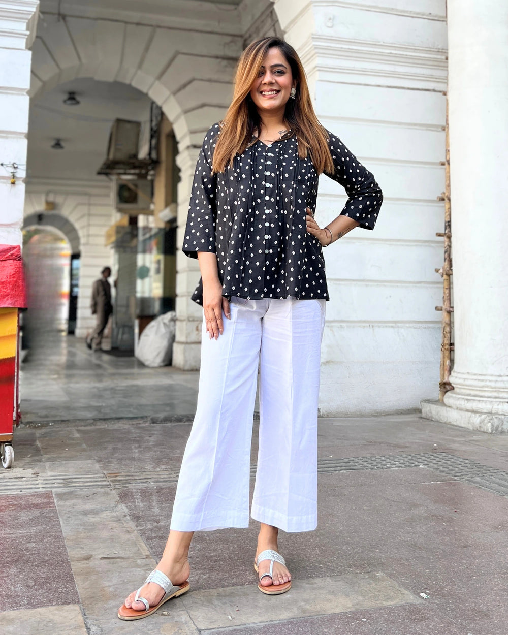 Black Bandhani Pintuck Top