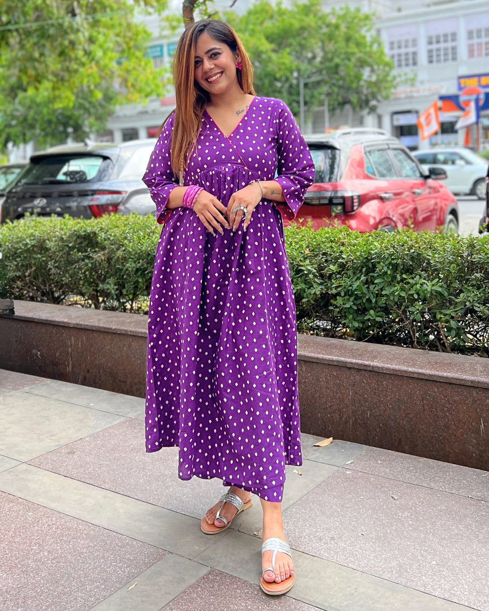 Purple Bandhani Alia Cut Kurta Set