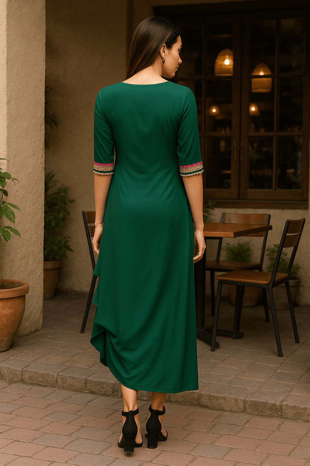 Green Silk Short Kurta & Fusion Salwar - Set of 2