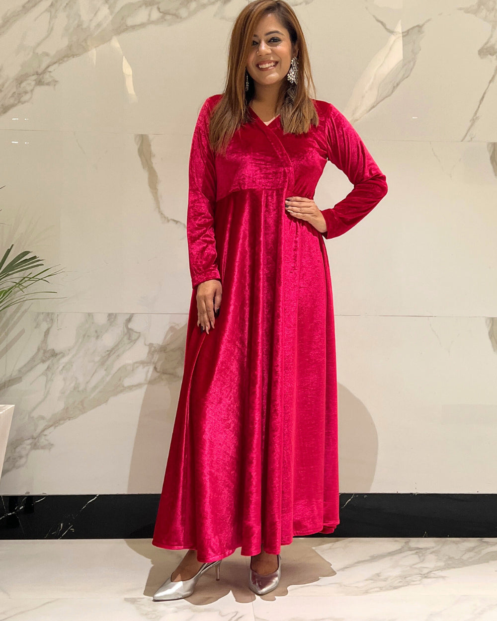 Soft Pink Gota Embroidered Anarkali Dress For Women