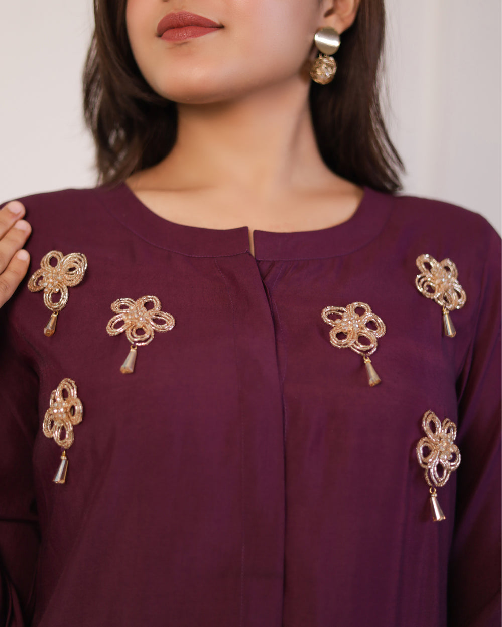 Purple Silk Short Kurta & Fusion Salwar - Set of 2