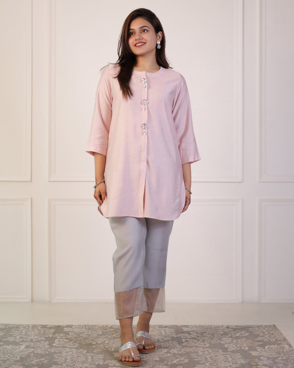 Turkish Rose Schiffli Co-ord Set of 2 With Palazzo