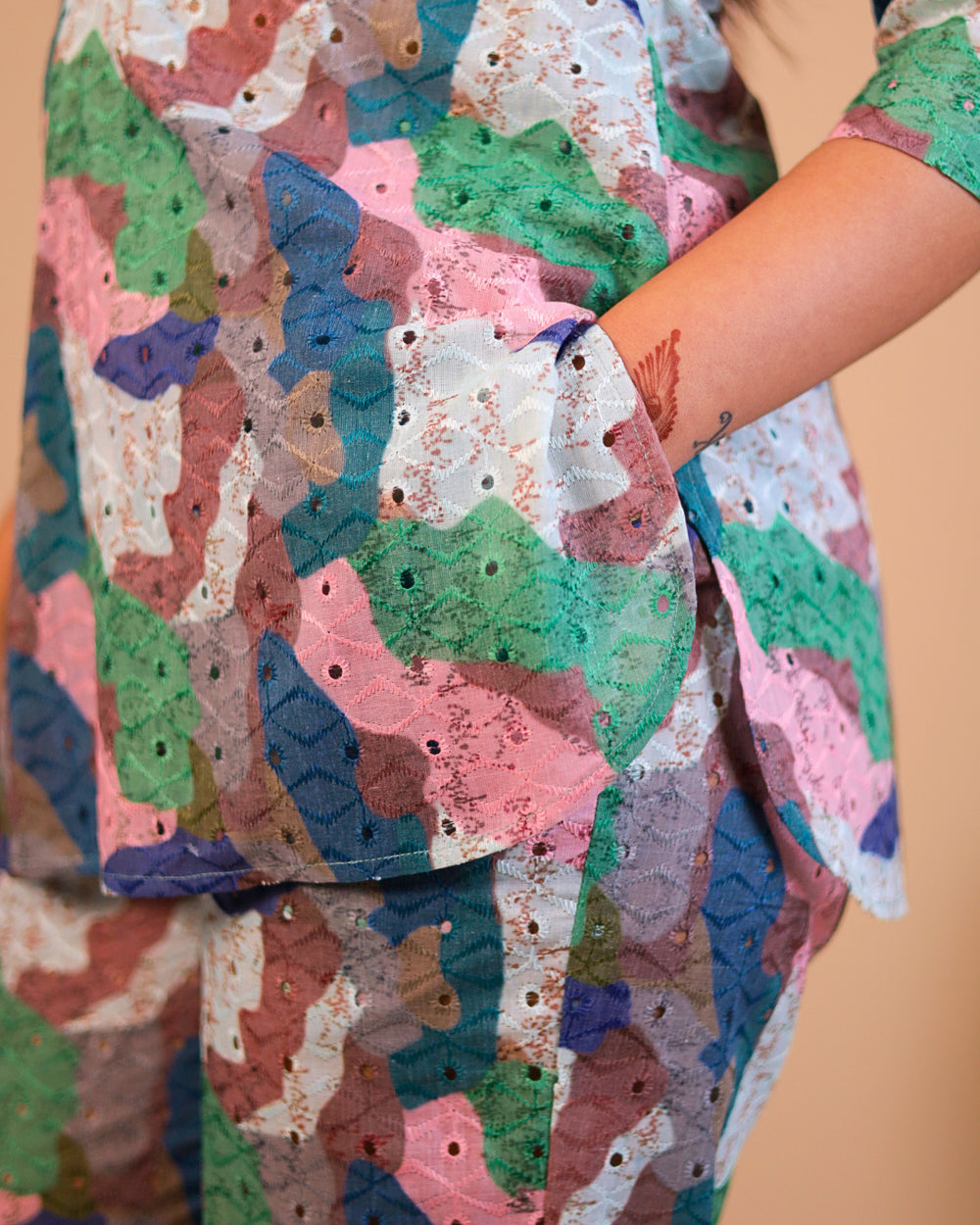 The fabric will not last more than 3 to 4 washes. It is extremely overpriced for such poor quality cotton. I bought a Magenta shirt also, which bled color on the first wash. The white flowers are stained purple. It can be now used as a dusting cloth. The customer service is offering a 15% discount. As if one would risk buying anything from this website again. So Beware, you won't get any refund for defective pieces sold.