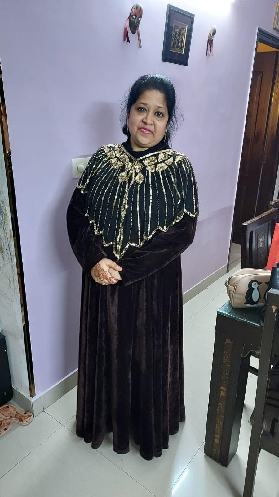 I was surprised and extremely happy when I saw a gown this beautiful fit me so well in first go. Material was also very soft. Just though if there could be a thin inner lining it would be better. I recieved several compliments that day. I can reuse this gown in several ways. Adding a heavy duppata or a gorgeous cape. It can be reused so many times considering it's a very simply built velvet gown. Can't wait to try all of them. Really loved it.