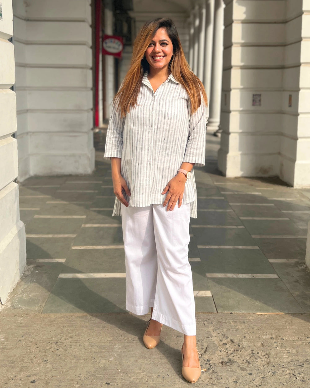 This white handwoven cotton striped shirt is your go-to for easy, everyday sophistication. With a relaxed longline silhouette and stripes, it brings comfort and charm together in one timeless piece. Crafted from breathable handwoven cotton, whether you’re headed to the office or out for a casual. Available in sizes S to 7XL, this shirt blends traditional craftsmanship with modern comfort.