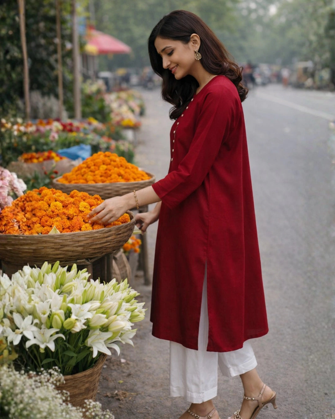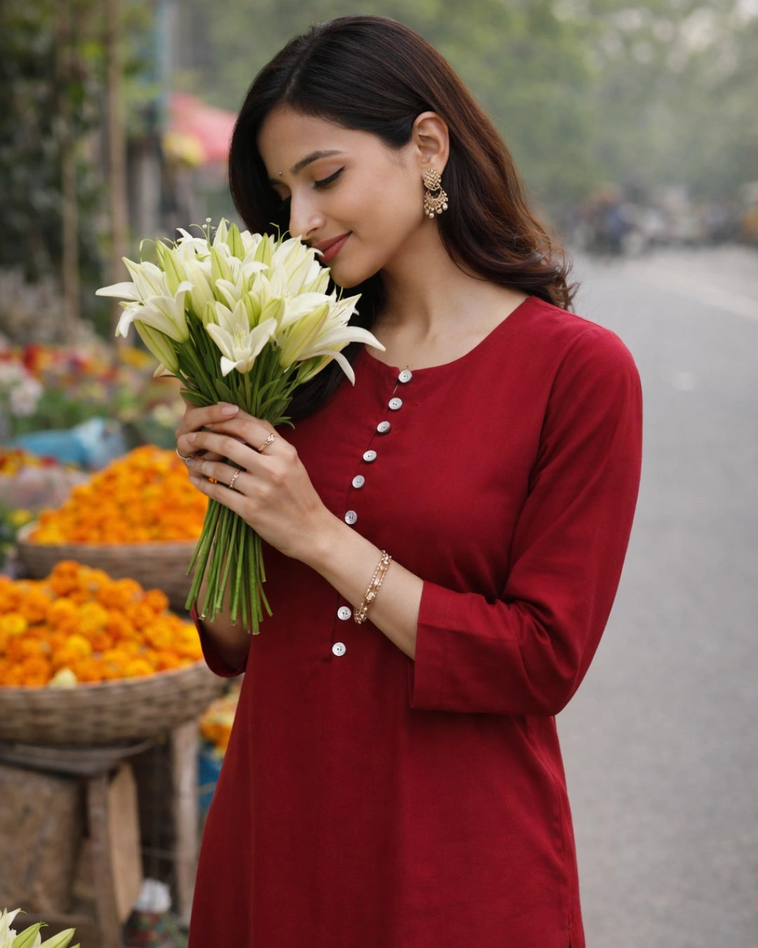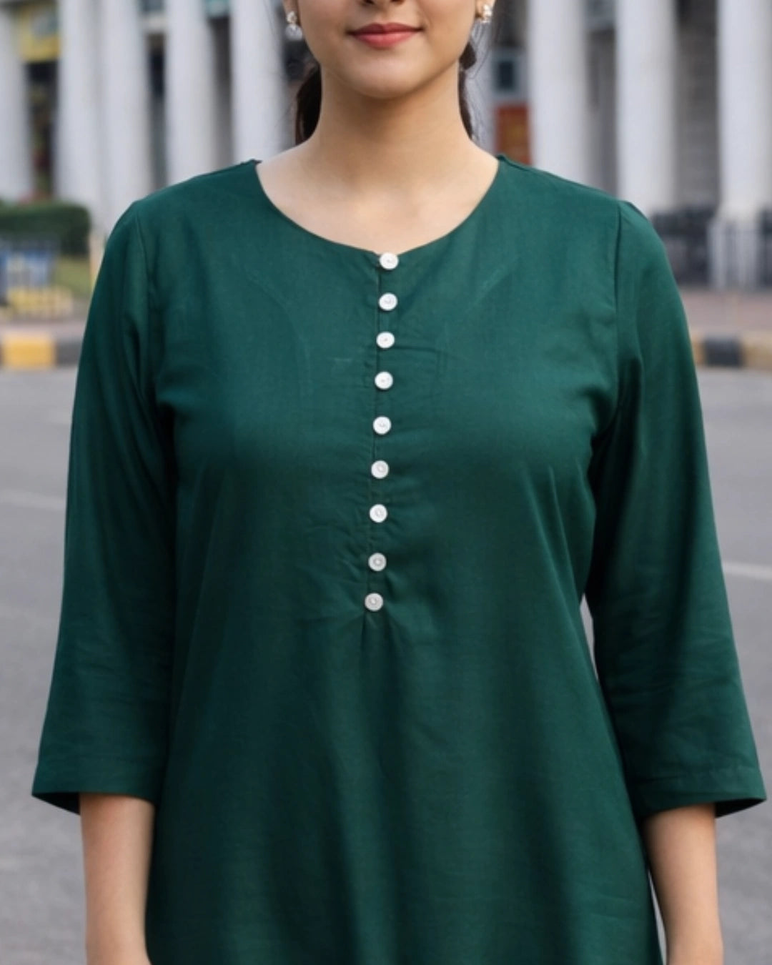 Stay effortlessly stylish with this Women's Teal Rozana Straight Kurta, crafted from soft and breathable rayon fabric. Designed with a clean straight silhouette and button detailing on the front, this kurta offers a simple yet elegant look perfect for daily wear, office, and casual outings.